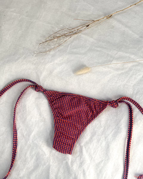 Bombacha regulable para atar en los costados. Integramente forrada.