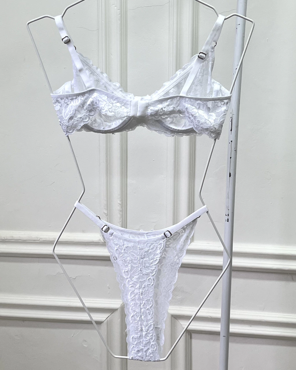 Corpiño de puntilla con aro y recorte para mejor capacidad, coleta y breteles regulables. Todos los avios metalicos son de Zamak , hipoalergenicos y antioxidantes. Fabricacion propia